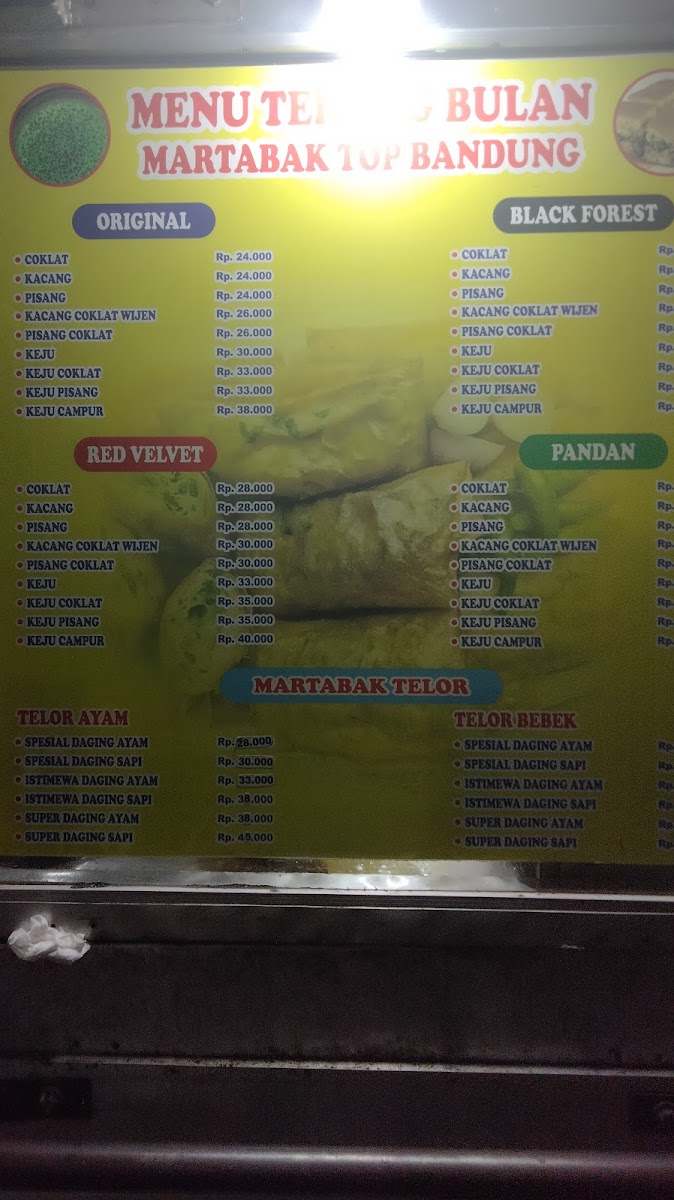 Martabak Top Bandung in Surabaya offers a delightful experience for murtabak enthusiasts. Known for its perfectly crafted martabak manis, this spot truly lives up to its name with a soft, fluffy dough and rich, sweet fillings that melt in your mouth. Customers praise the balance of sweetness and texture, highlighting it as a must-try. Their martabak telur is equally commendable—crispy with the right amount of savory filling, and importantly, not greasy. Prices remain affordable, making it an ideal choice for a quick snack or casual meal.